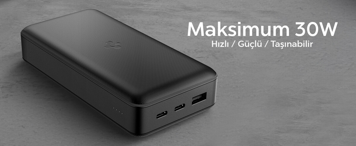 - ? USB-C portu üzerinden 30W gücünde hızlı şarj sağlar ve 30W gücünde kendini hızlı şekilde şarj eder.