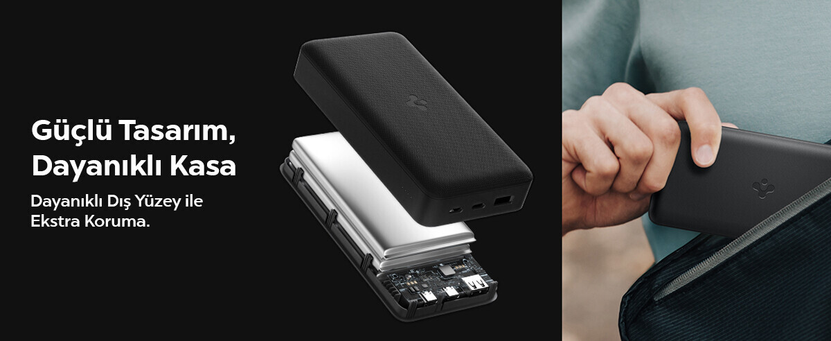 Dayanıklı ve Güçlü Kasa, Şık Tasarım: Şık ve modern tasarımıyla öne çıkan Spigen Harici Batarya, uzun ömürlü kullanım için yüksek kaliteli malzemelerden üretilmiştir. Dayanıklı kasası modern bir görünüm sunarken sağlam yapısıyla da cihazınızı uzun yıllar boyunca güvenle kullanabilmenize imkân tanır. Hafif ve güçlü gövdesi sayesinde taşımayı kolaylaştırırken, dayanıklı dış yüzeyi ekstra koruma sağlar. Yüzey kaplaması, sadece estetik bir görünüm sunmakla kalmaz; aynı zamanda cihazın elde kaymasını önleyerek güvenli bir tutuş sağlar.