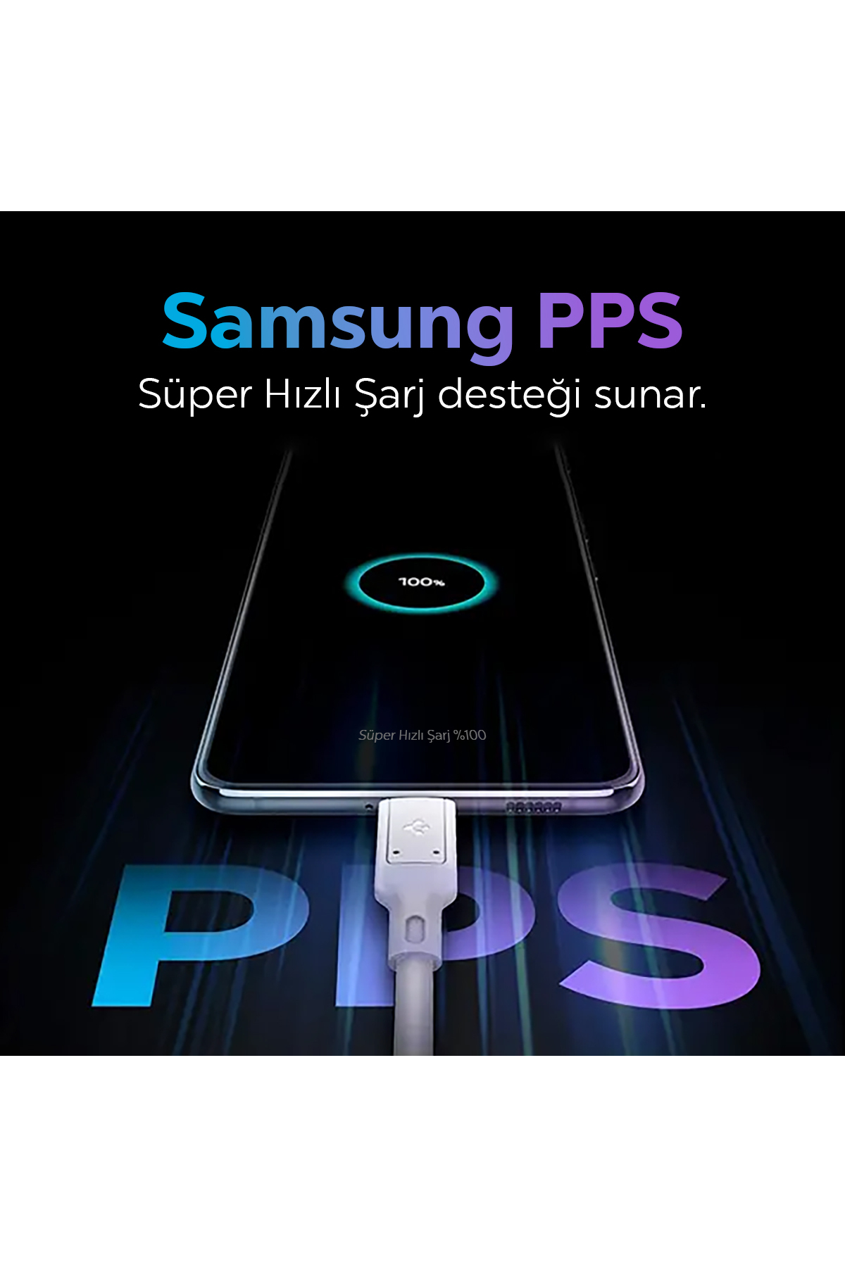 Samsung PPS (Süper Hızlı Şarj) desteği sunar. Samsung PPS Süper Hızlı Şarjı kullanabilmeniz için bu protokolü destekleyen kablo ile beraber kullanılması gerekmektedir. Cihazla birlikte gelen kablo, Samsung PPS Süper Hızlı Şarjı destekler.